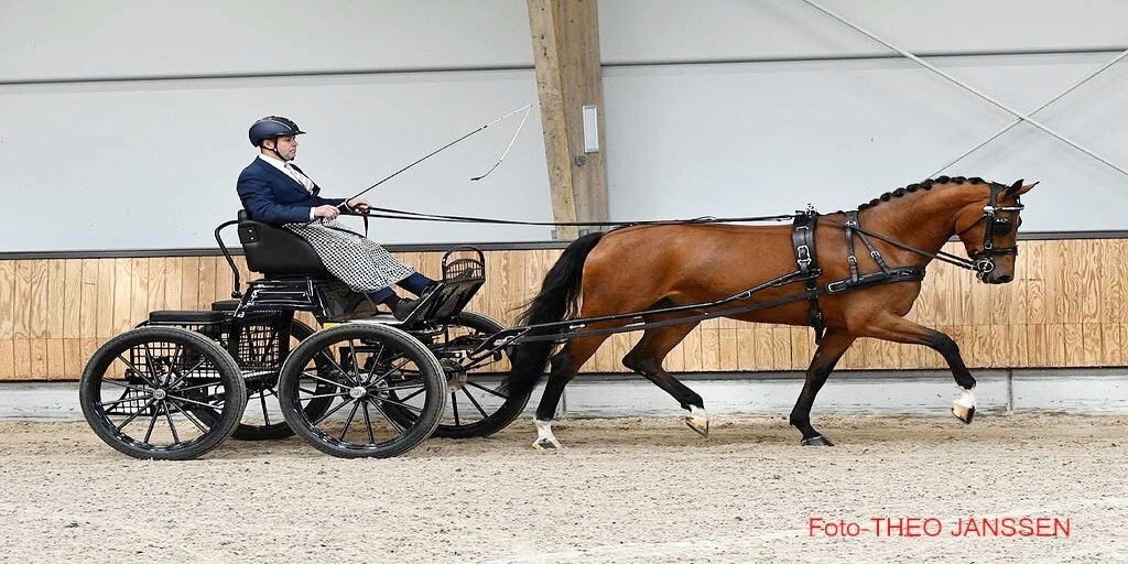 Raffael heeft een zeer goede verrichting onder het zadel gelopen in het najaar en laat nu ook aangespannen een heel fijne balans, kracht en veel zelfhouding zien. Raffael is een zoon van Alexandro P uit een tuigpaard merrie van Heliotroop VDM x Patijn. Uit deze lijn zijn diverse goede menpaarden gefokt waaronder Kadora, het 4* menpaard van de Amerikaanse 4-span kampioen Chester Weber.