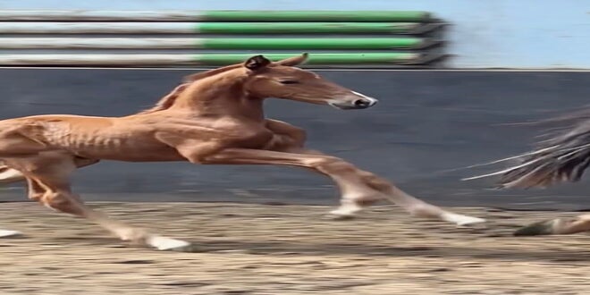 De Gelderse keur elite sport merrie Miss Montréal VB heeft een mooi groot merrie veulen gekregen van de dressuur hengst One Million (Vivaldi x Apache x Negro). We noemen haarVirginia VB.