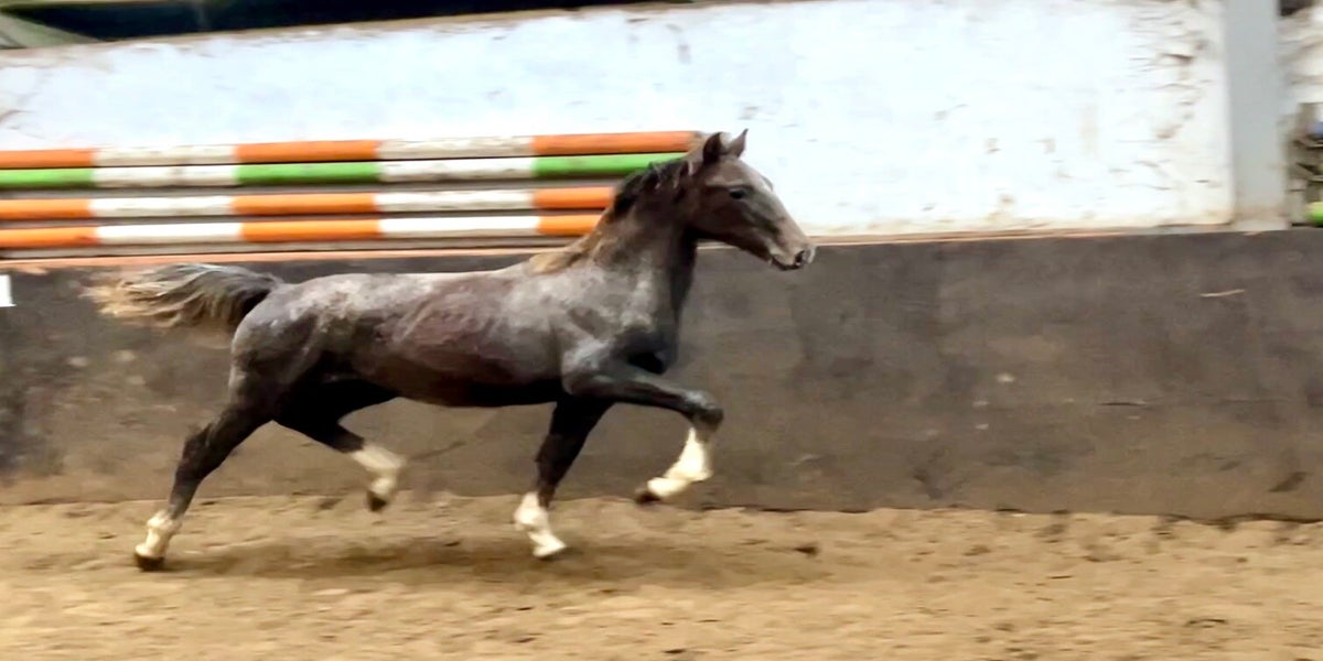 - Santiago (Las Vegas x Manno) 3-jarige ruin, licht aangereden onder het zadel en in het tuig