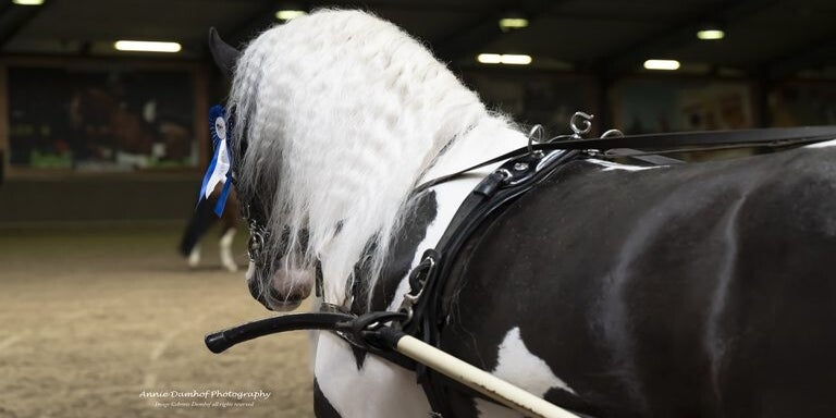 - Jelske vd Jonker (Julius 486 x Jasper 366) 6-jarige Friese ruin, beleerd in tuig en onder het zadel